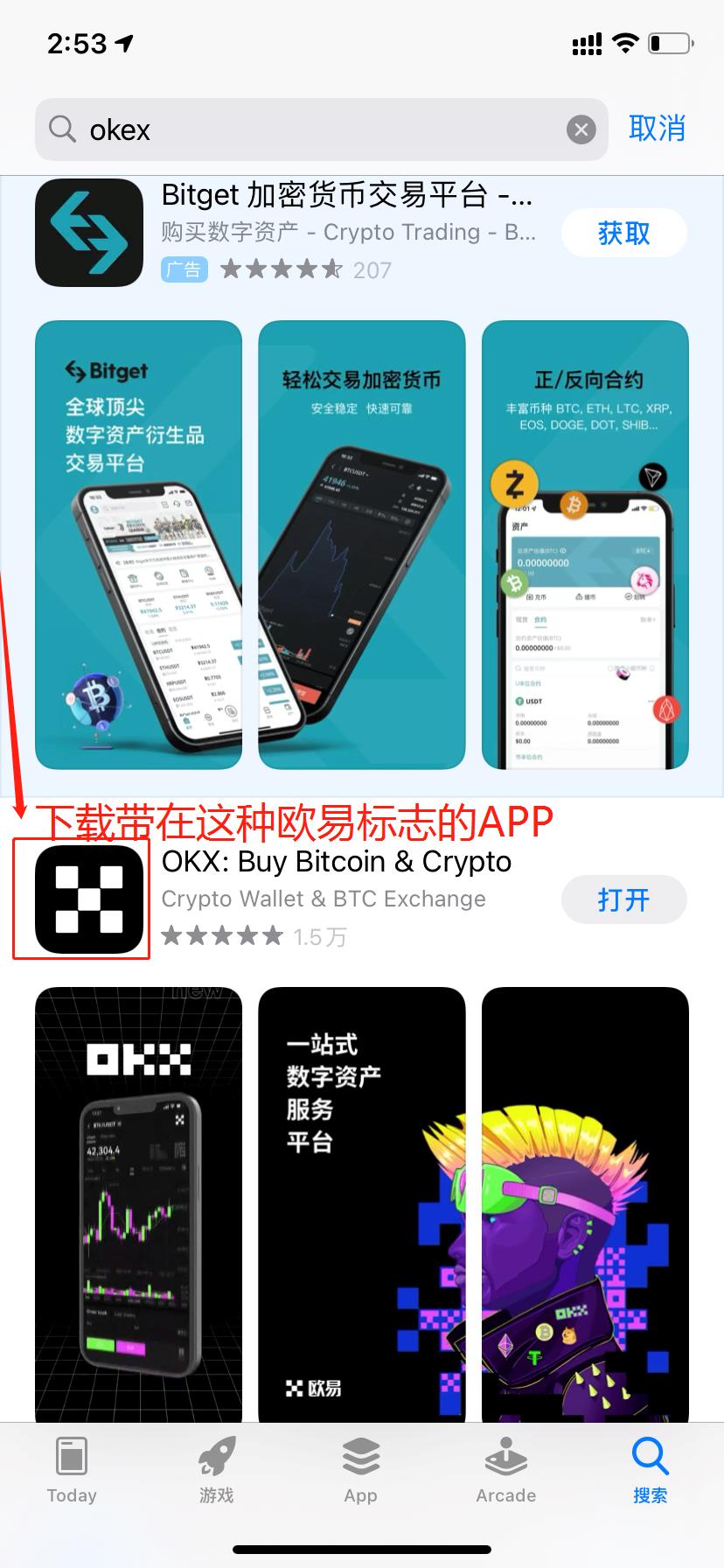 4、登陆好后,进入苹果应用商店,搜索“OKEX",很多朋友会说为什么不是搜索”欧易“呢?因为欧易是中文叫法,它的全球名为”OKEX"